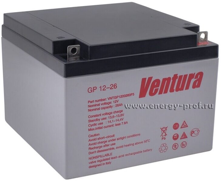 Model/version: lead dry element, AGM, nominal. voltage: 12 V, battery capacity: 26 Ah, length: 178 mm, height: 125 mm, width: 166 mm, height including terminal pole: 125 mm, features: indoor installation