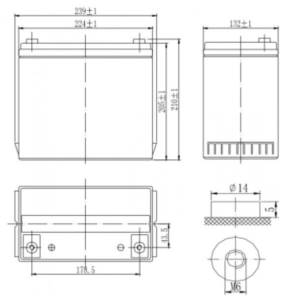 Model/version: lead dry element, AGM, nominal. voltage: 12 V, battery capacity: 55 Ah, length: 239 mm, height: 205 mm, width: 132 mm, height including terminal pole: 210 mm, features: indoor installation