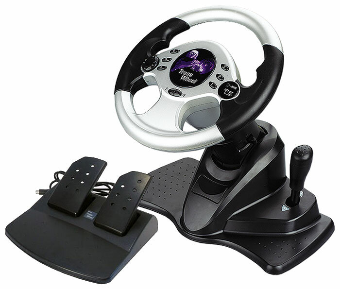 Compatibility: PC, connection type: wired, type: transmission, gas pedal, brake pedal, steering wheel, vibration feedback and feedback: vibration feedback