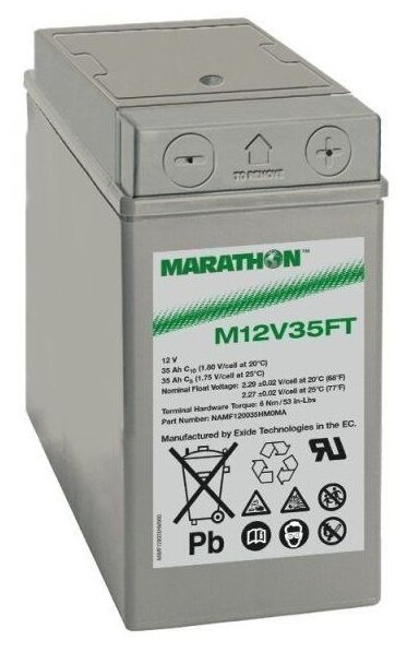 Model/version: lead dry element, AGM, nominal. voltage: 12 V, battery capacity: 35 Ah, length: 280 mm, height: 189 mm, width: 107 mm, height including terminal pole: 189 mm