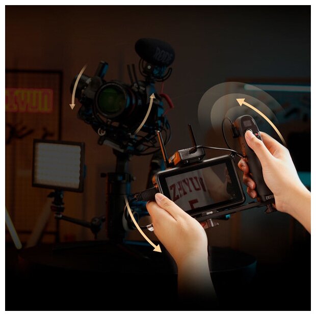 Detachable handle with built-in display, smartphone tilt control, axis lock, 9 accessory sockets