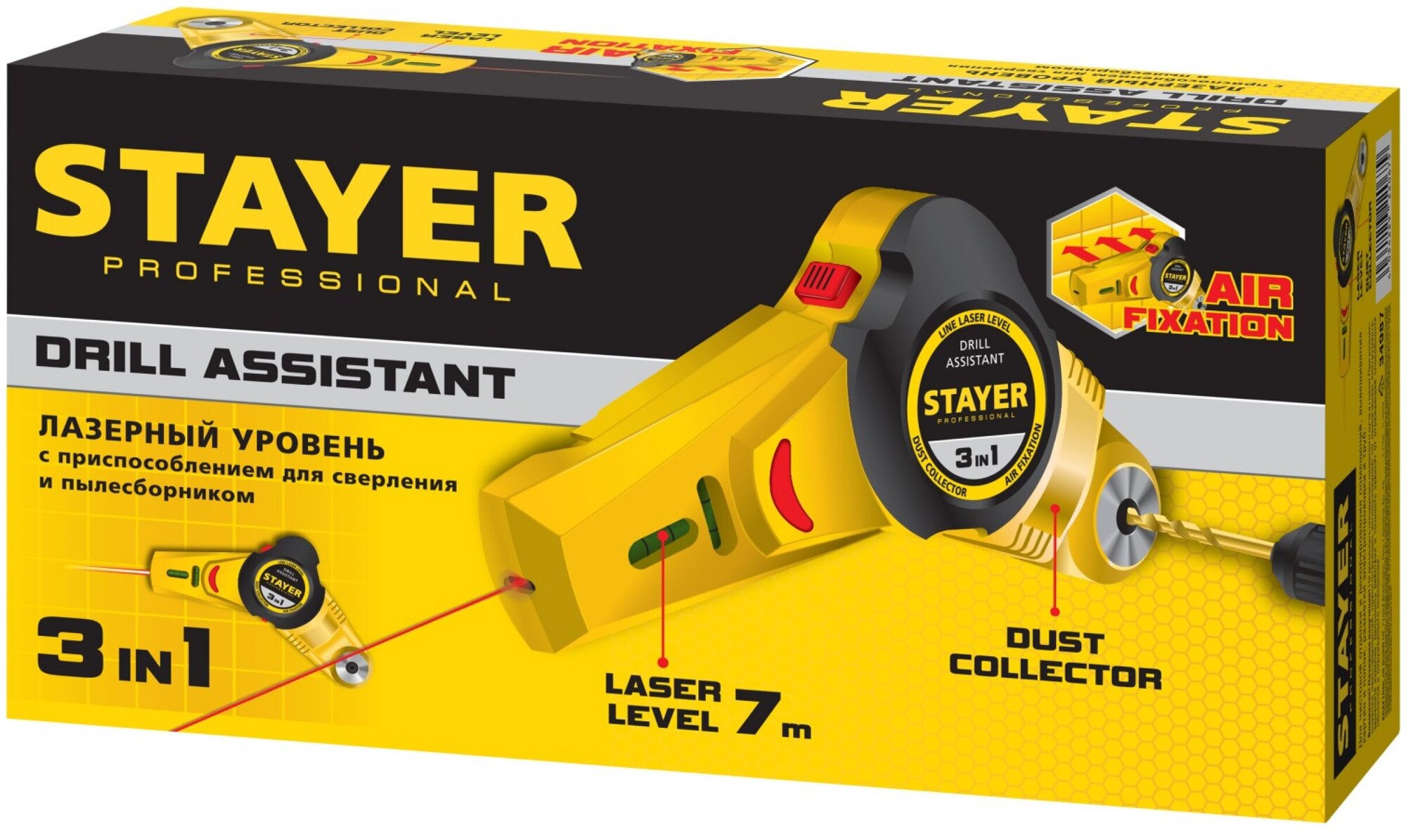 STAYER Level with drilling attachment, 7m, fine +/-1.5 mm/m STAYER Drill Assistant, 34987