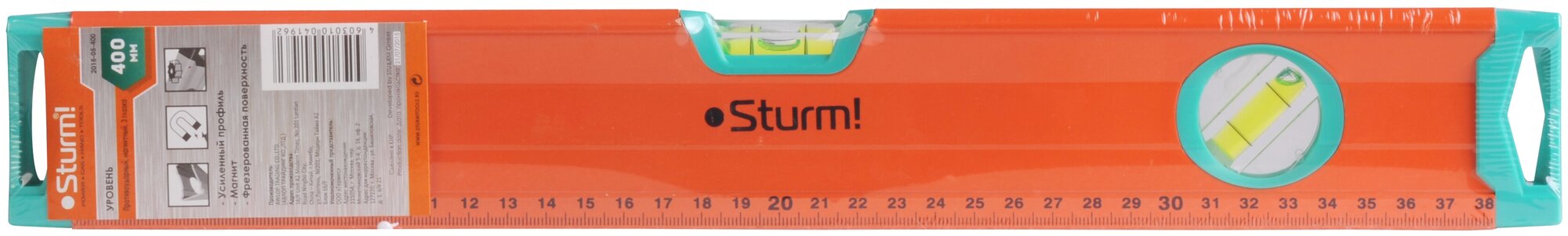 Type: level, type: square, magnetic, milled edge, length: 40 cm, number of eyes: 3, weight: 325 g
