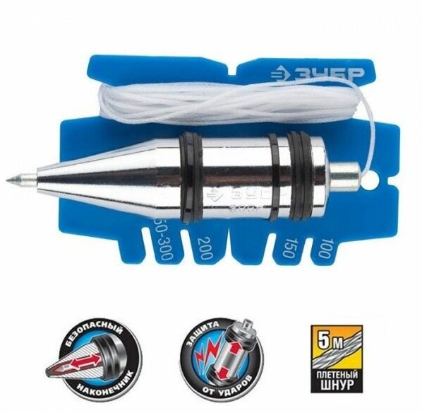 Type: mason plumb line, plumb line length: 500 cm, load shape: pointed cylinder, weight: 500 g