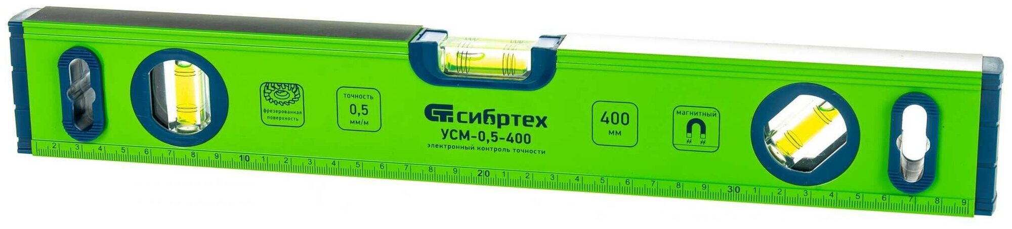 Level aluminum USM-0.5-400, milled, 3 eyes, magnetic, 400 mm//