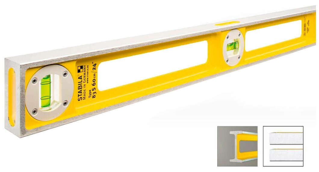 Type: level, type: square, fluorescent, milled edge, length: 80 cm, number of eyes: 3, weight: 1126 g