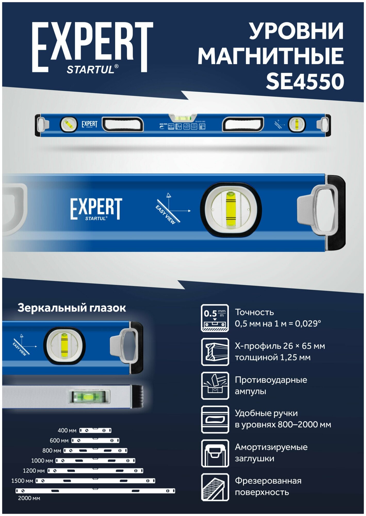 1000mm magnetic EXPERT STARTUL SE4550-100 household mirror eye, powerful magnet, milled