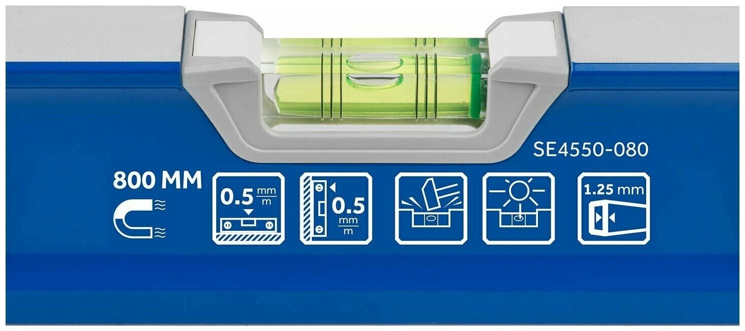 Type: level, magnetic, milled edge, length: 80 cm, number of eyes: 3, weight: 642 g