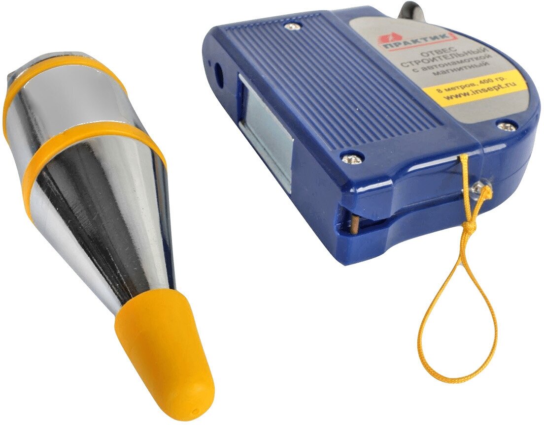 Type: mason's plumb bob, plumb line length: 800 cm, automatic winding, load shape: pointed cylinder, weight: 400 g
