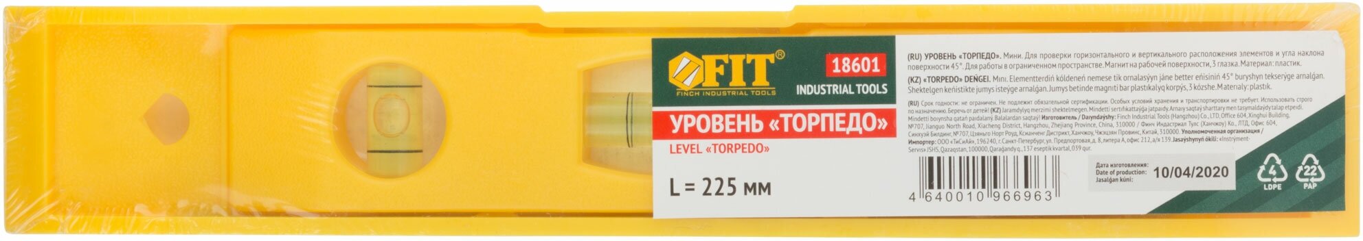 Type: level, type: torpedo, magnetic, length: 22.50 cm, number of eyes: 3