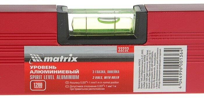 Aluminium, 1200 mm, 3 eyes, red, ruler// Matrix