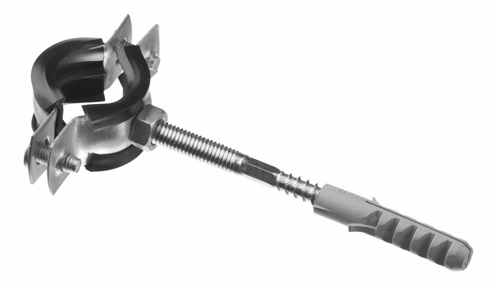 Type: pipe clamp, clamp fixation: for a screwdriver wrench, quantity: 1 pc., minimum diameter: 20 mm, maximum diameter: 24 mm, equipment: pipe clamp 1/2", sanitary stud M8x80 mm, dowel 10x50 mm, stud in computer