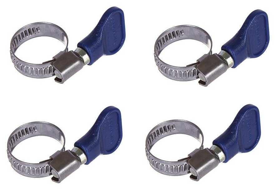 Type: worm-drive clamp, clamp fixation: butterfly, set, quantity: 4 pcs., minimum diameter: 12 mm, maximum diameter: 22 mm, clamp width: 9 mm