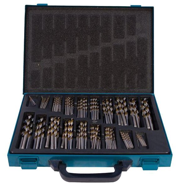 Sizes: 1; 1.5; 2; 2.5; 3; 3.5; 4; 4.5; 5; 5.5; 6; 6.5; 7; 7.5; 8; 8.5; 9; 9.5; 10 mm, shank type: cylindrical, quantity per set per pack: 170 pcs., drill material: HSS, for metal