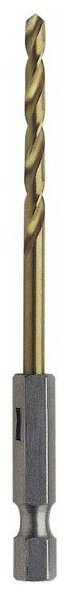 Equipment: piece, dimensions: 4x43x95 mm, shank type: hexagonal, quantity in a set package: 1 pc., drill material: HSS-G TiN, sharpening angle: 135 degrees, for metal