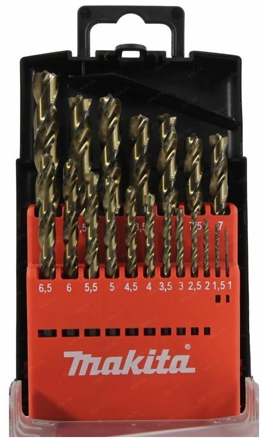 Sizes: for metal 1, 1.5, 2, 2.5, 3, 3.5, 4, 4.5, 5, 5.5, 6, 6.5, 7, 7.5, 8, 8.5, 9, 9.5, 10 mm, shank type: cylindrical, quantity in per pack: 19 pcs., drill material: HSS, for metal