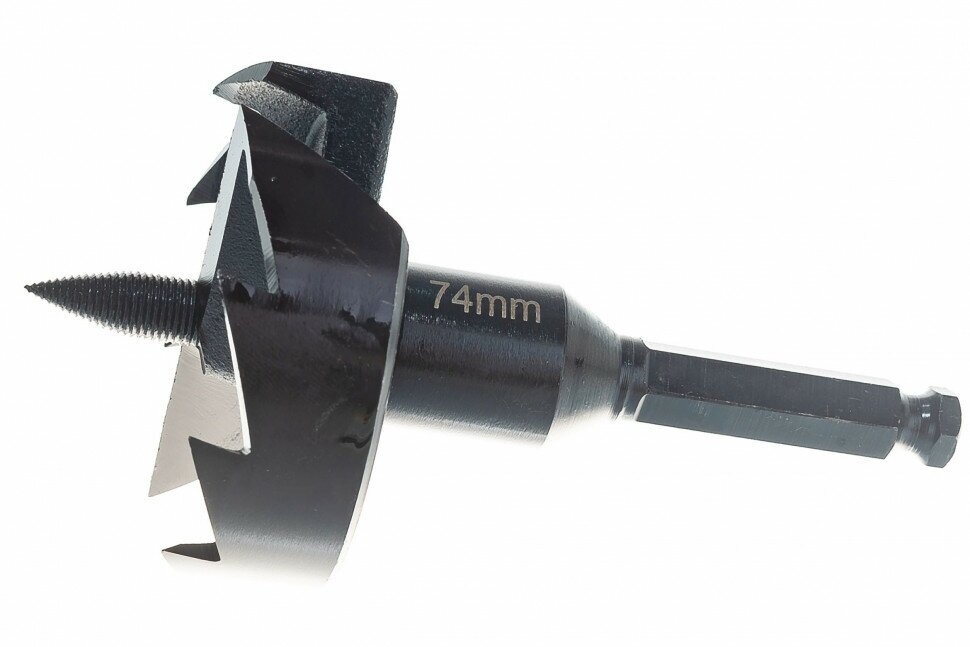 Equipment: piece, standard dimensions: 74 mm, shank type: cylindrical, quantity in the set package: 1 pc., drill material: HSS, for wood