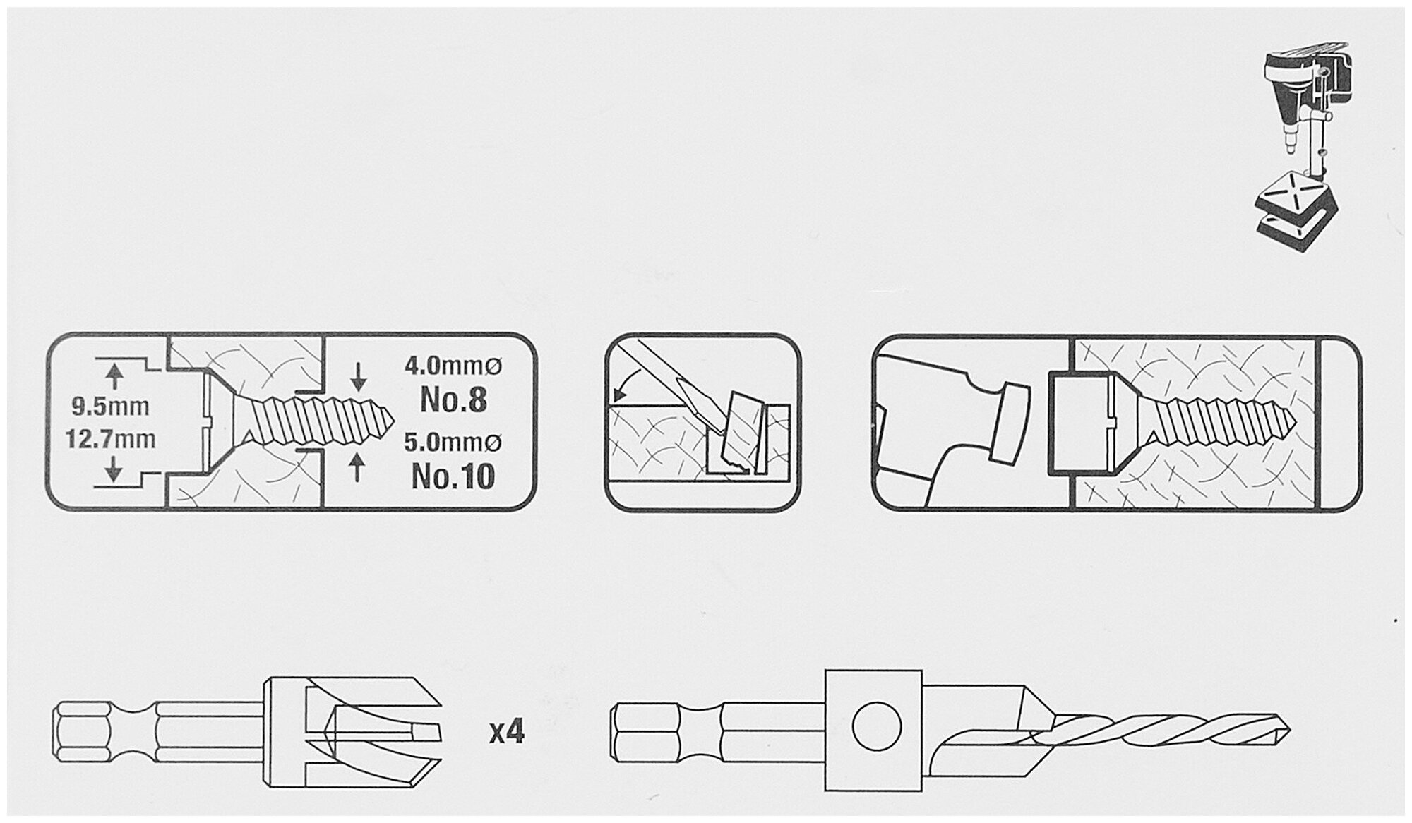 Standard sizes: Drills for self-tapping screws 4; 5 mm