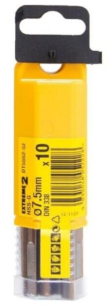 Dimensions: 7.5x66x109 mm, shank type: cylindrical, quantity per set per package: 10 pcs., drill material: HSS-G, sharpening angle: 118 degrees, for wood, for metal