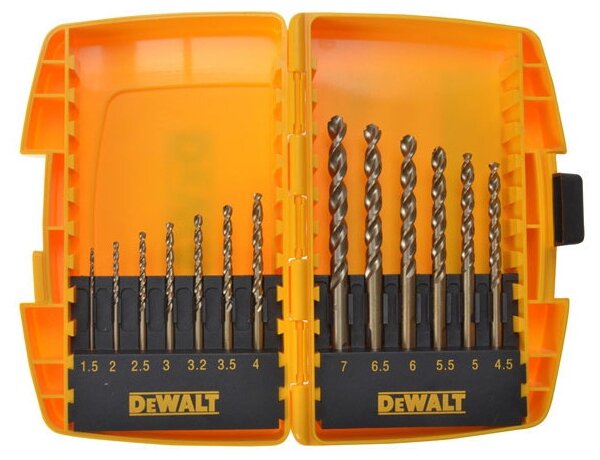 Sizes: for metal 1.5, 2, 2.5, 3, 3.2, 3.5, 4, 4.5, 5, 5.5, 6, 6.5, 7 mm, shank type: cylindrical, quantity per set per package: 13 pcs., drill material: HSS Co , for metal