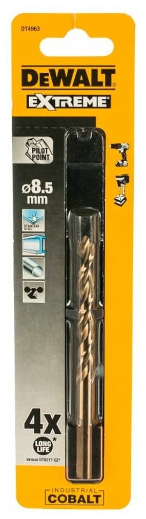 Equipment: piece, dimensions: 8.5x72x117 mm, shank type: cylindrical, quantity in a set package: 1 pc., drill material: HSS Co 5, for metal