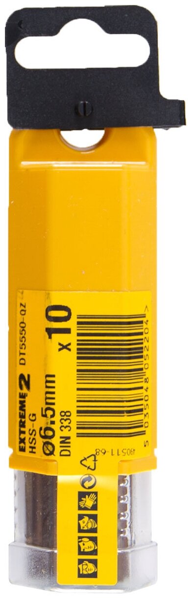Dimensions: 6.5x58x101 mm, shank type: cylindrical, quantity in a set package: 10 pcs., drill material: HSS-G, sharpening angle: 118 degrees, for wood, for metal
