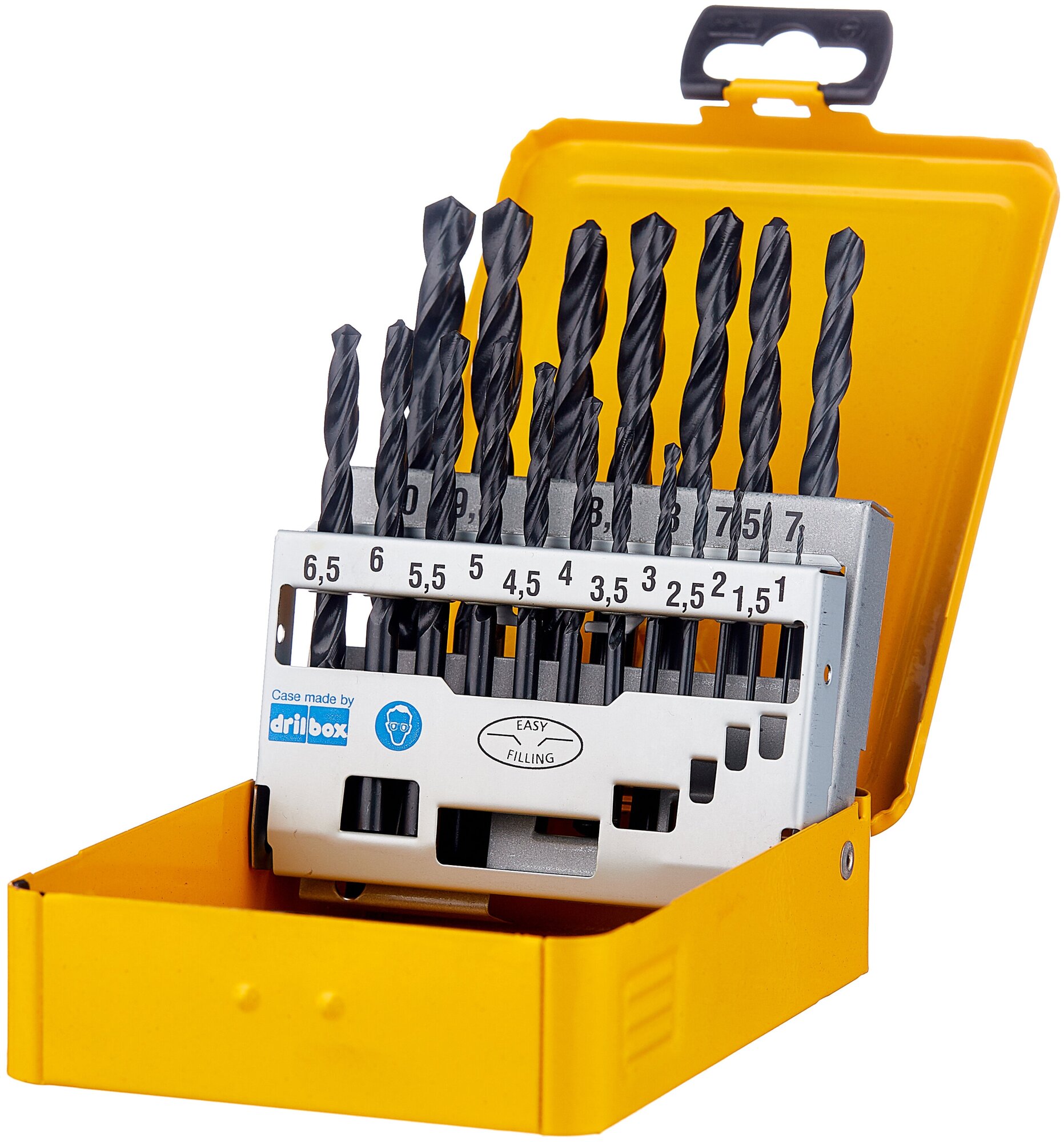 Sizes: for metal 1, 1.5, 2, 2.5, 3, 3.5, 4, 4.5, 5, 5.5, 6, 6.5, 7, 7.5, 8, 8.5, 9, 9.5, 10 mm, shank type: cylindrical, quantity in per pack: 19 pcs., drill material: HSS-R, for metal