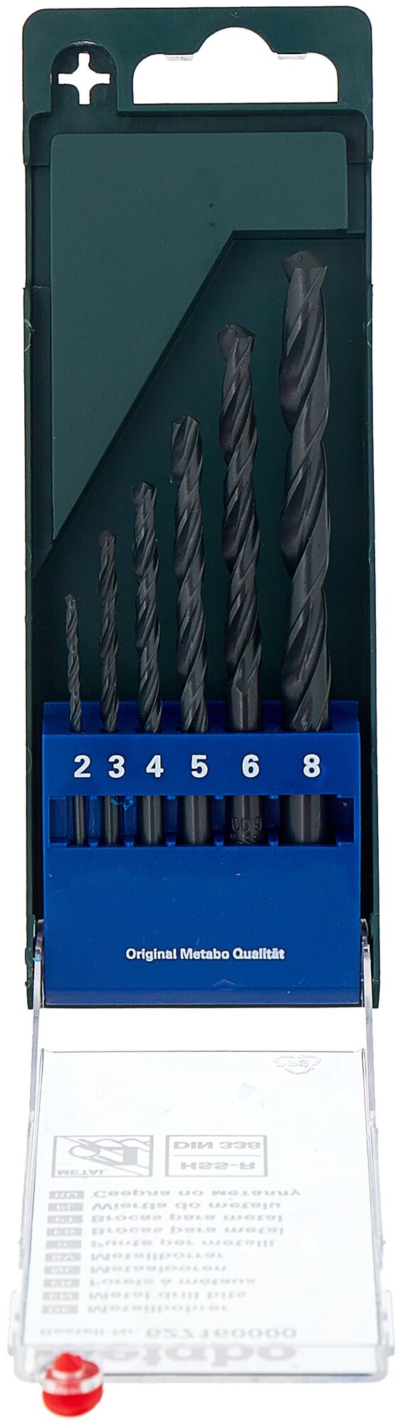Equipment: set, sizes: for metal 2, 3, 4, 5, 6, 7, 8 mm, shank type: cylindrical, quantity in the set package: 6 pcs., drill material: metal, sharpening angle: 118 degrees, for metal