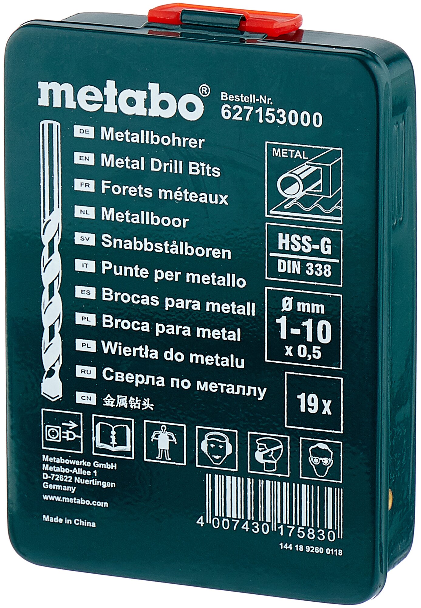 Equipment: set, sizes: for metal: 1, 1.5, 2, 2.5, 3, 3.5, 4, 4.5, 5, 5.5, 6, 6.5, 7, 7.5, 8, 8.5, 9, 9.5, 10 mm, shank type : cylindrical, quantity in a set package: 19 pcs., drill material: HSS-G, sharpening angle: 135 degrees, for metal