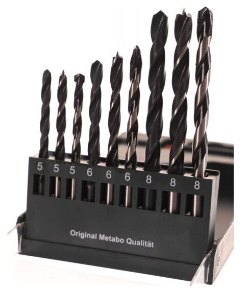 In a plastic cassette; 160x100x20mm; drills for stone for conventional and impact drills; milled execution; drill bits for wood hardened, with center point