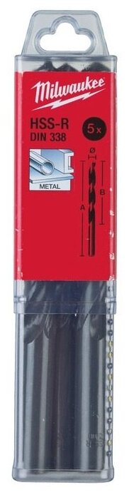 Equipment: piece set, dimensions: 12x101x151 mm, shank type: cylindrical, quantity in the set per package: 5 pcs., drill material: HSS-R, sharpening angle: 118 degrees, for metal