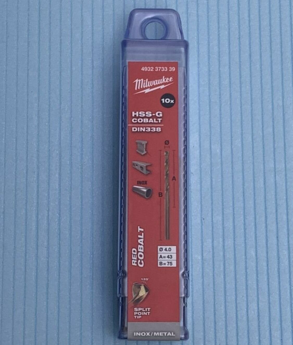 Dimensions: 4x43x75 mm, shank type: cylindrical, quantity per set per pack: 10 pcs., drill material: HSS Co, for metal