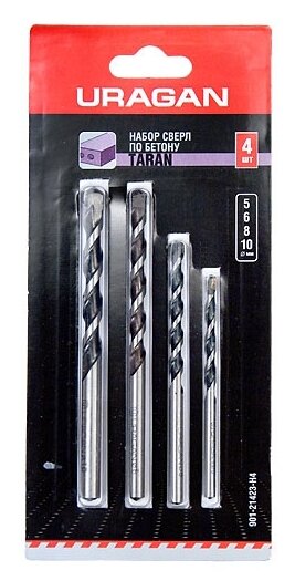 Standard sizes: for concrete 5, 6, 8, 10 mm, shank type: cylindrical, quantity in a set package: 4 pcs., for stone and porcelain stoneware, for brick, for concrete