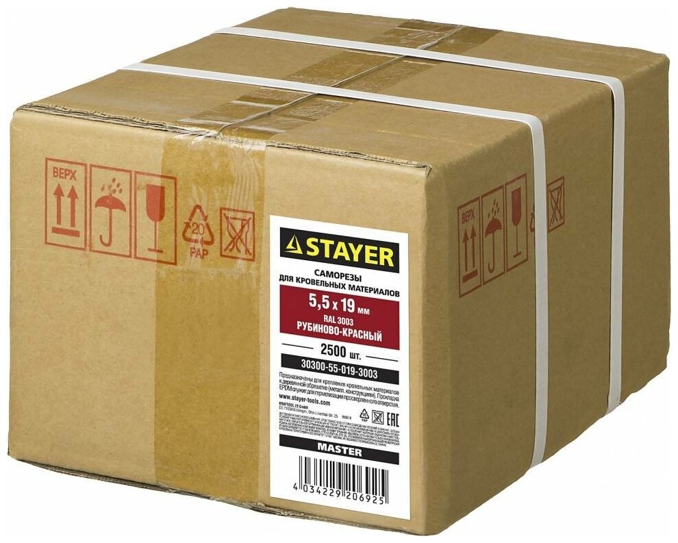 Self-tapping screws for roofing materials painted RAL 3003 5.5x19 mm 100 pcs STAYER MASTER 30300-55-019-3003