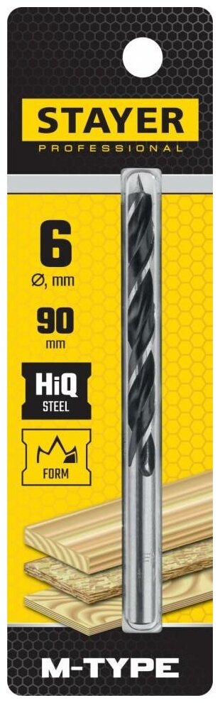 Wood twist drill M-type 6,0x90/50 mm STAYER 2942-090-06_z02