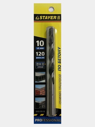 Equipment: piece, dimensions: 10x120 mm, shank type: cylindrical, quantity in a set package: 1 pc., drill material: VK8, for stone and porcelain stoneware, for brick, for concrete