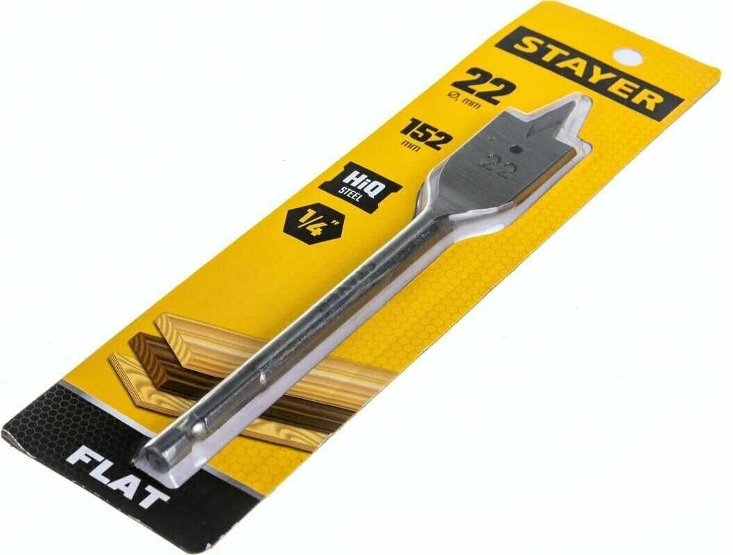 Equipment: piece, dimensions: 22x155 mm, shank type: hexagonal, quantity in the set package: 1 pc., drill material: steel 45, for wood