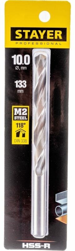 Equipment: piece, dimensions: 10x87x133 mm, shank type: cylindrical, quantity in the set package: 1 pc., drill material: HSS, sharpening angle: 118 degrees, for metal