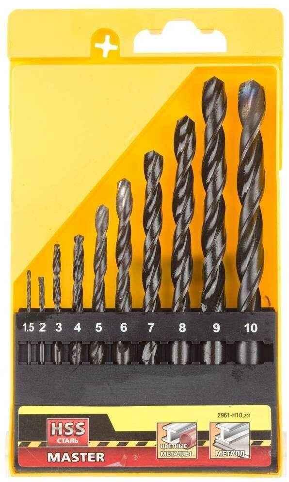Standard sizes: for metal 1.5, 2, 3, 4, 5, 6, 7, 8, 9, 10 mm, shank type: cylindrical, quantity per set per package: 10 pcs., drill material: HSS, for metal