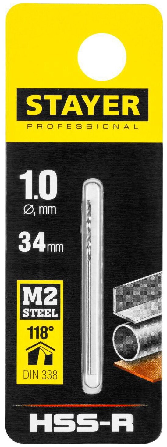 Equipment: piece, dimensions: 1x12x34 mm, shank type: cylindrical, quantity in a set package: 1 pc., drill material: HSS, sharpening angle: 118 degrees, for metal