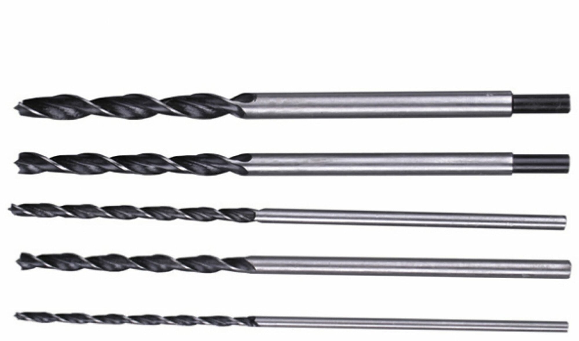 Equipment: set, sizes: for wood 6x300, 8x300, 10x300, 12x300, 14x300 mm, shank type: cylindrical, quantity in the set package: 5 pcs., for wood
