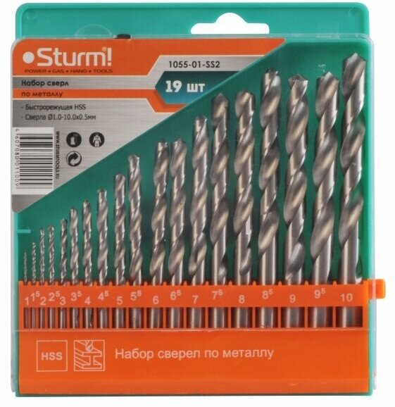 Equipment: set, sizes: for metal 1, 2, 3, 4, 5, 6, 7, 8, 9, 10 mm, shank type: cylindrical, quantity in the set package: 10 pcs., drill material: HSS, for metal