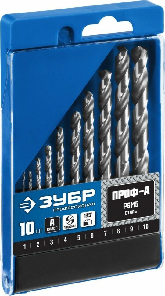 Sizes: for metal: 1.5, 2, 2.5, 3, 3.2, 3.5, 4, 4.5, 4.8, 5, 5.5, 6, 6.5 mm, quantity in the set package: 13 pcs., sharpening angle: 135 degrees, for metal