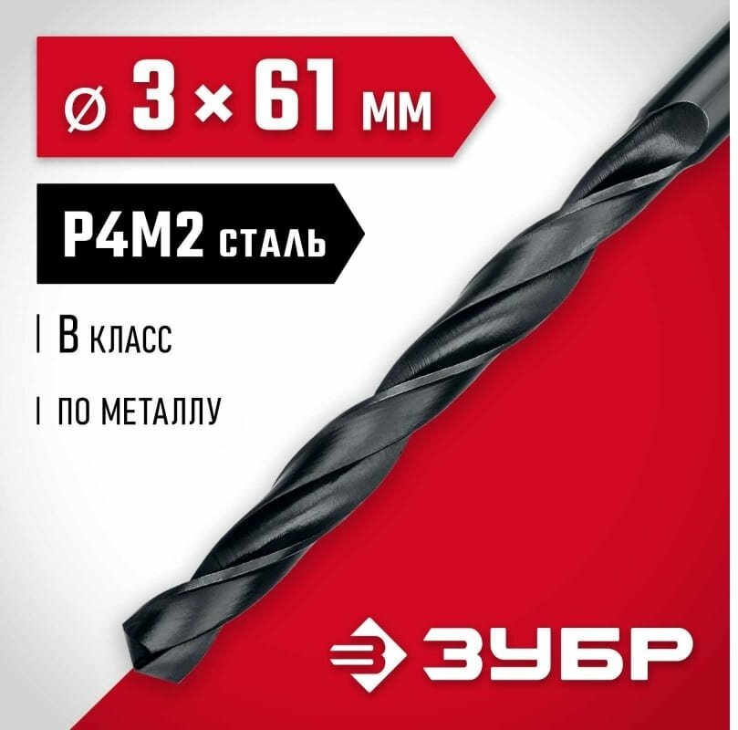Equipment: piece, dimensions: 3x33x61 mm, shank type: cylindrical, quantity in the set package: 1 pc., drill material: HSS, sharpening angle: 118 degrees, for metal