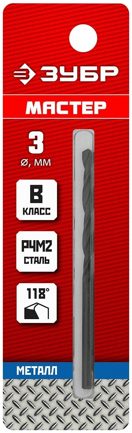 ZUBR Drill for metal 3.5 x 70 mm, class B, R4M2 steel, high speed steel ZUBR Master