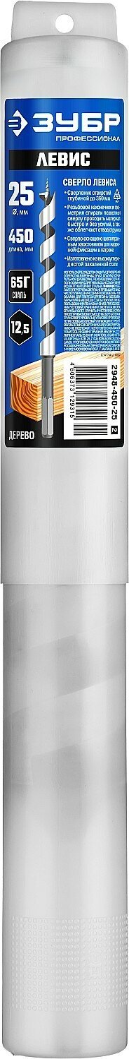 BISON 25x450/360mm, lewis drill for wood, hex shank, 2947-450-25