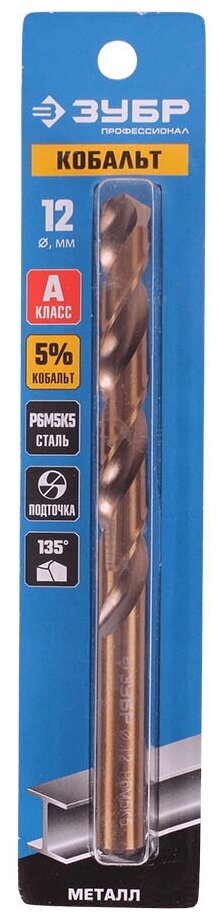 ZUBR Ø 12 x 151 mm, R6M5K5 steel, class A, metal drill cobalt 29626-12 Professional
