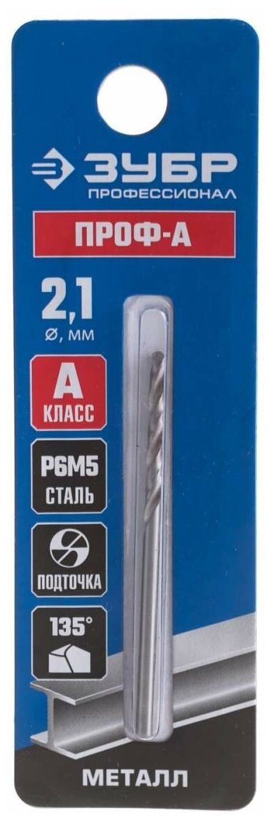 Metal drill ZUBR Expert 4-29625-049-2.1 2.1 x 49 mm