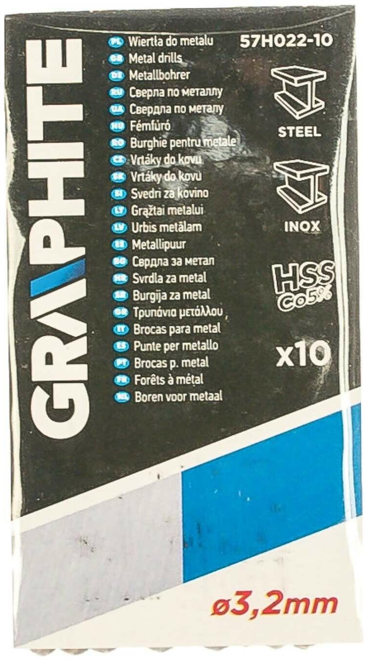 Dimensions: 3.2x36x65 mm, shank type: cylindrical, quantity per set per package: 10 pcs., drill material: HSS Co, sharpening angle: 135 degrees, for metal