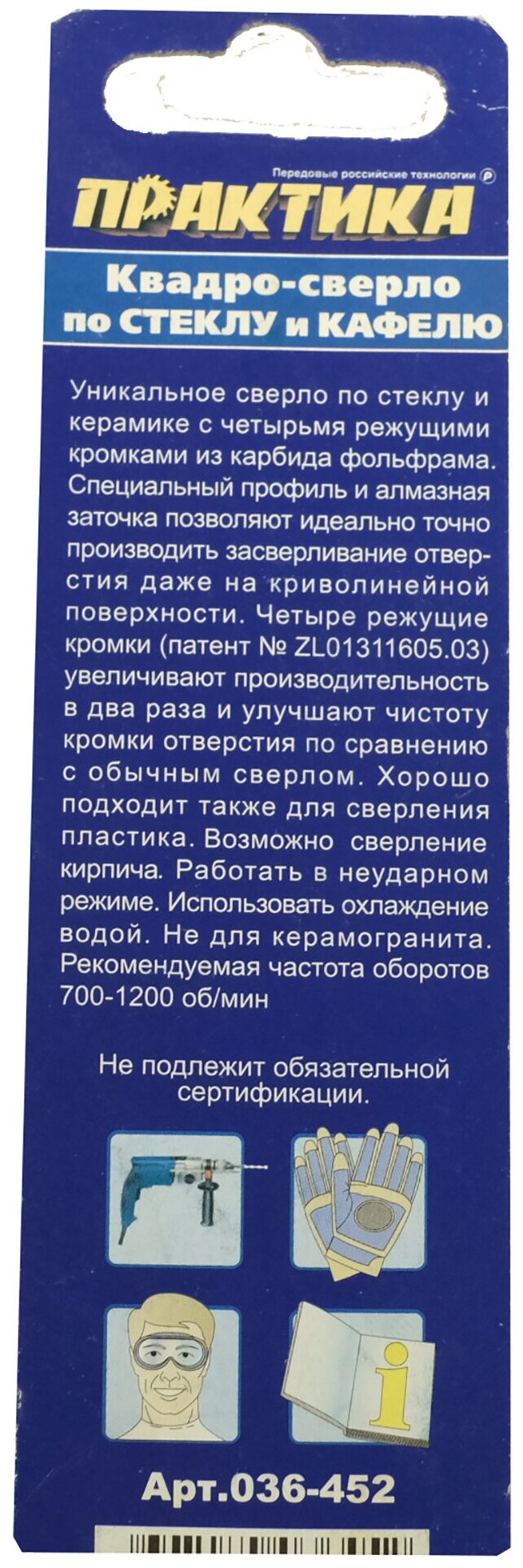 Glass drill Expert 3x60 mm, square, 1 pc., blister, 036-452 90068085